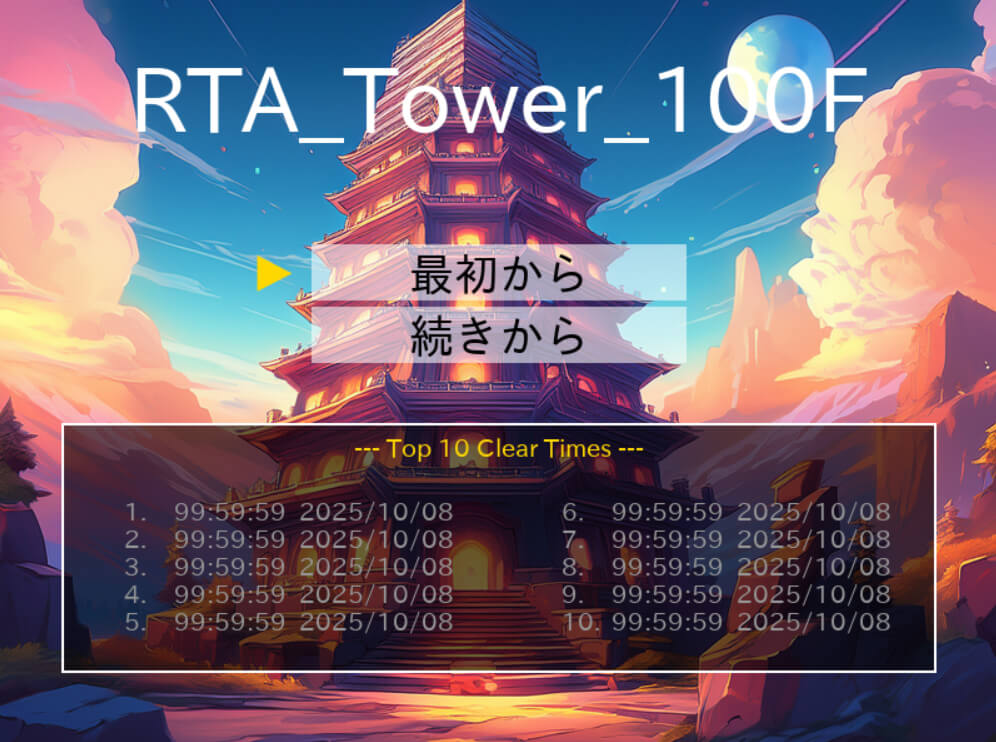 この度は『RTA_Tower_100F』をプレイしていただき、ありがとうございます。