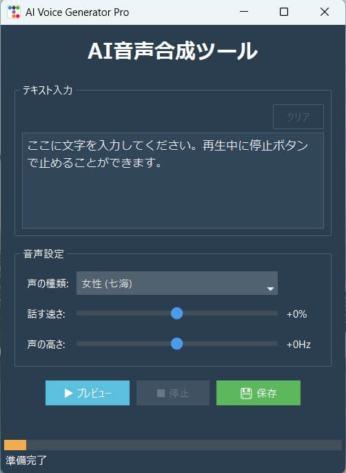 声の種類や速さを調整。